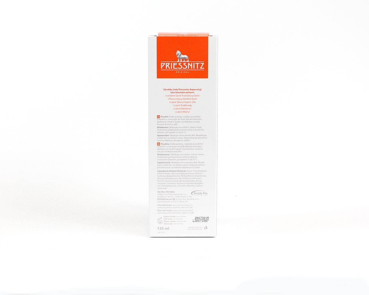 Pressnitzovo mazání na žíly a cévy obsahuje přírodní látky escin (z plodu kaštanu koňského Aesculus hippocastanum) a flavonoidy (z červených listů vinné révy Vitis vinifera). Jedná se o bezpečné a prověřené přírodní látky s šetrnými, příznivými účinky na kvalitu a funkce žilního a lymfatického systému. Při aplikaci lokálně na kůži dochází k ochlazení kůže. Intenzivní chladivý účinek vede ke zmírnění obtíží spojených s křečovými žilami, otoky a snížení pocitu těžkých či unavených nohou. Chladivý účinek je podpořen přidáním mentolu. Pressnitzovo mazání na žíly a cévy